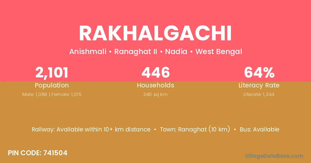 Rakhalgachi village is located in the Ranaghat II Subdivision of the Nadia district in West Bengal.
