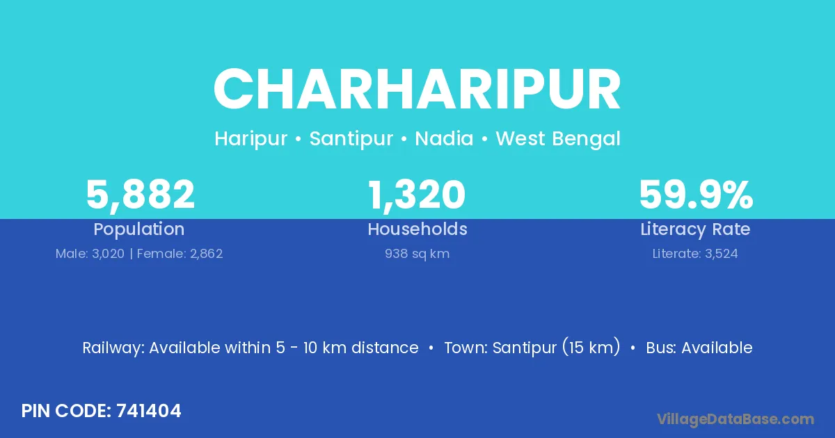 According to Census 2011 information, the village code of Charharipur village is 741404.