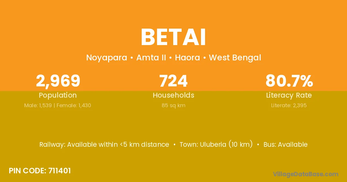 Krishna Nagar (52 km) is the nearest town to Betai village for major economic activities and is located approximately 52 km away.