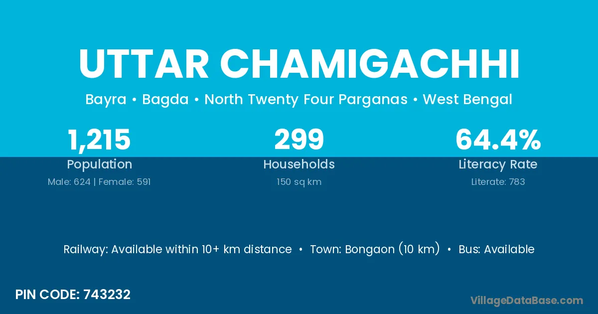 Bongaon (10 km) is the nearest town to Uttar Chamigachhi village for major economic activities and is located approximately 10 km away.