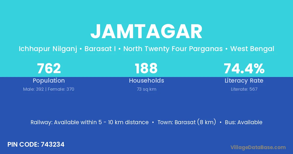 Barasat (8 km) is the nearest town to Jamtagar village for major economic activities and is located approximately 8 km away.