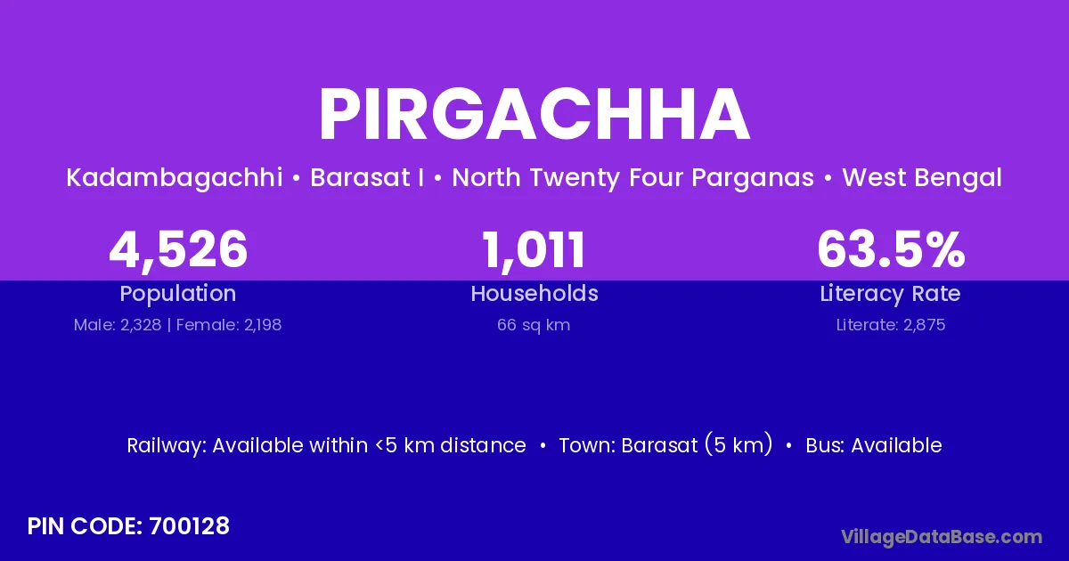 Barasat (5 km) is the nearest town to Pirgachha village for major economic activities and is located approximately 5 km away.