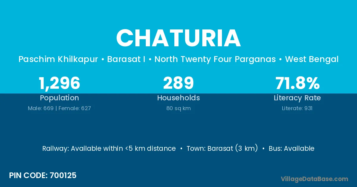 Barasat (3 km) is the nearest town to Chaturia village for major economic activities and is located approximately 3 km away.