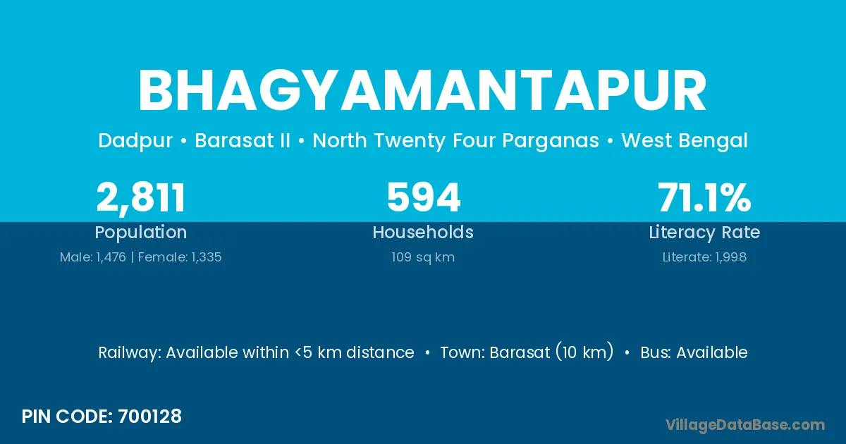 Barasat (10 km) is the nearest town to Bhagyamantapur village for major economic activities and is located approximately 10 km away.