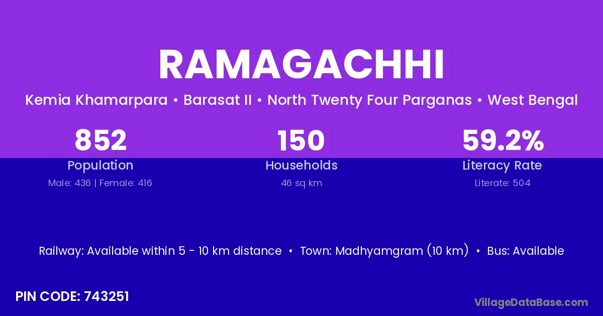 Madhyamgram (10 km) is the nearest town to Ramagachhi village for major economic activities and is located approximately 10 km away.