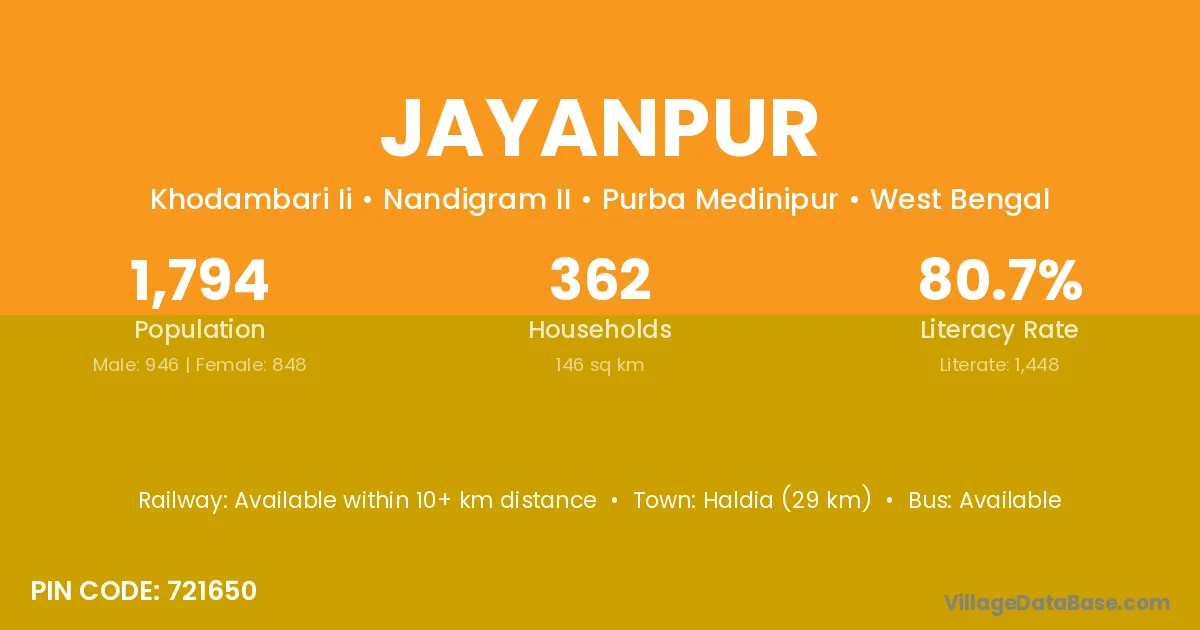 Kanchrapara (5 km) is the nearest town to Jayanpur village for major economic activities and is located approximately 5 km away.