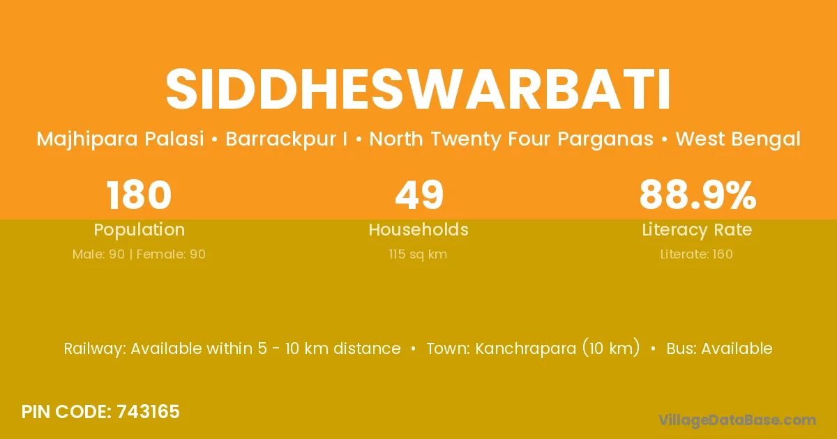 Kanchrapara (10 km) is the nearest town to Siddheswarbati village for major economic activities and is located approximately 10 km away.