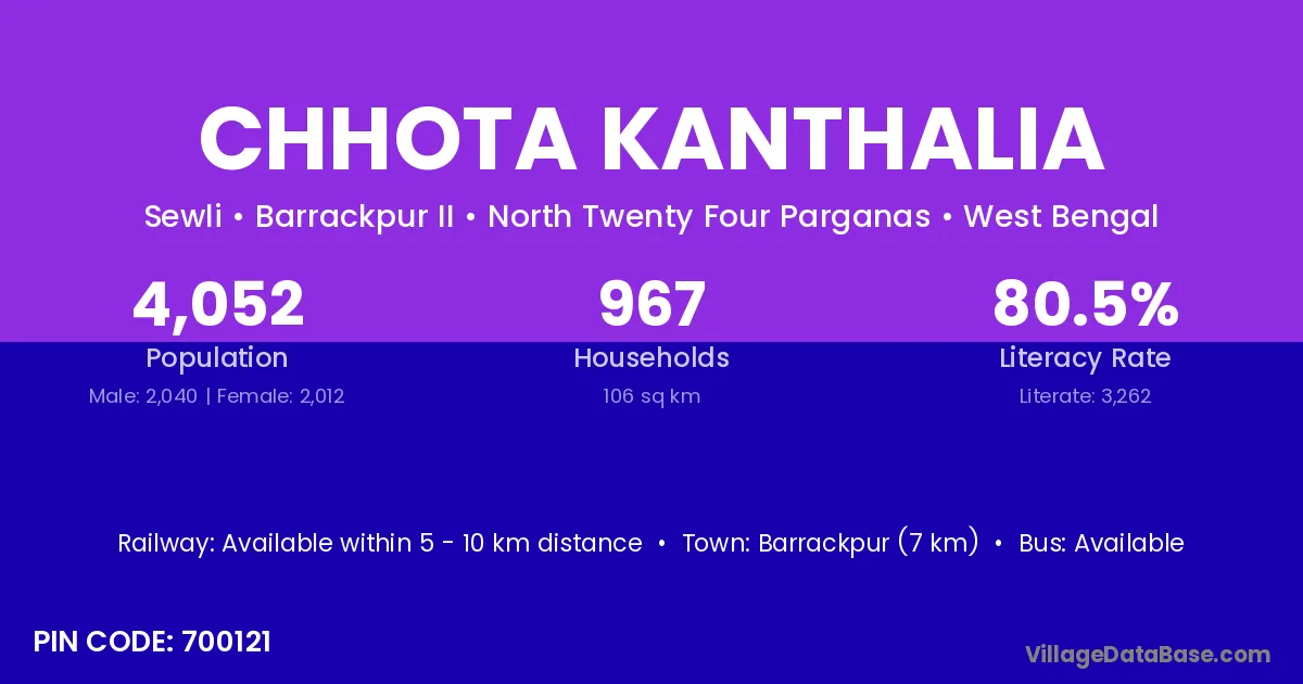 Chhota Kanthalia village is located in the Barrackpur II Subdivision of the North Twenty Four Parganas district in West Bengal.