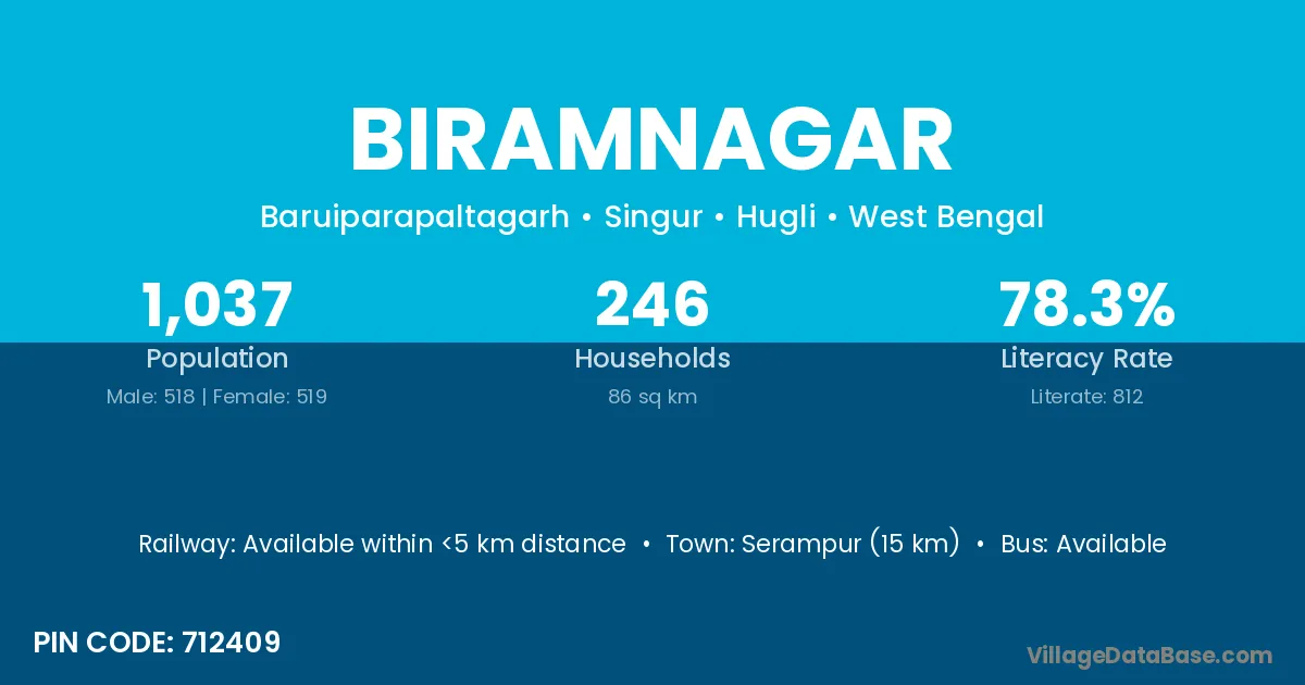 Basirhat (5 km) is the nearest town to Biramnagar village for major economic activities and is located approximately 5 km away.