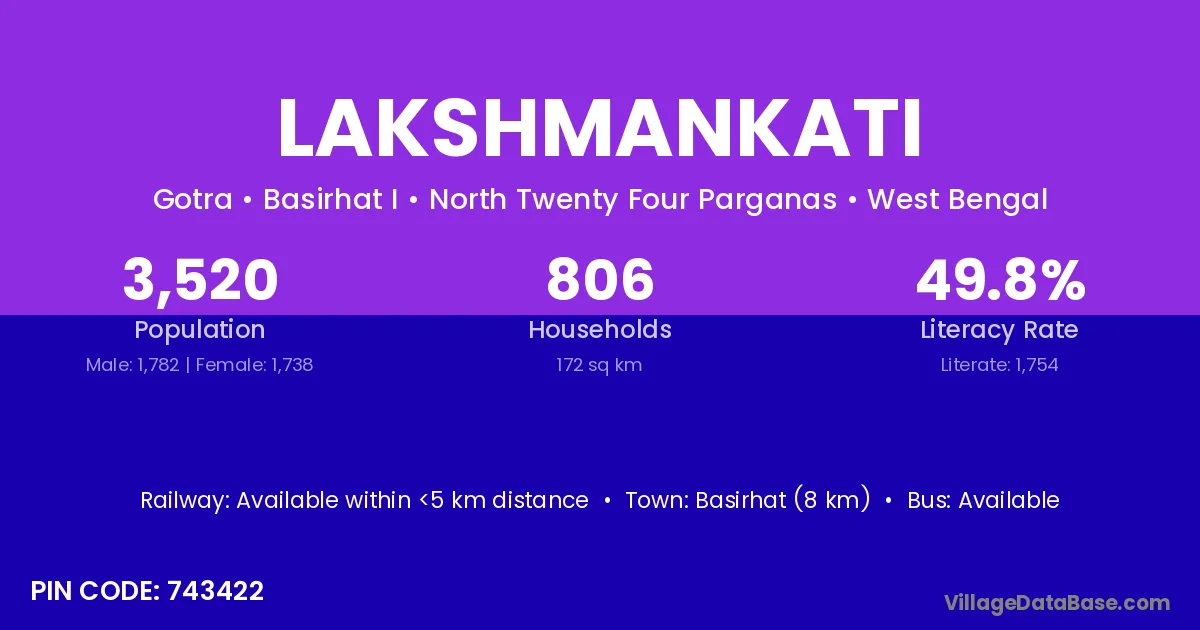 Basirhat (8 km) is the nearest town to Lakshmankati village for major economic activities and is located approximately 8 km away.
