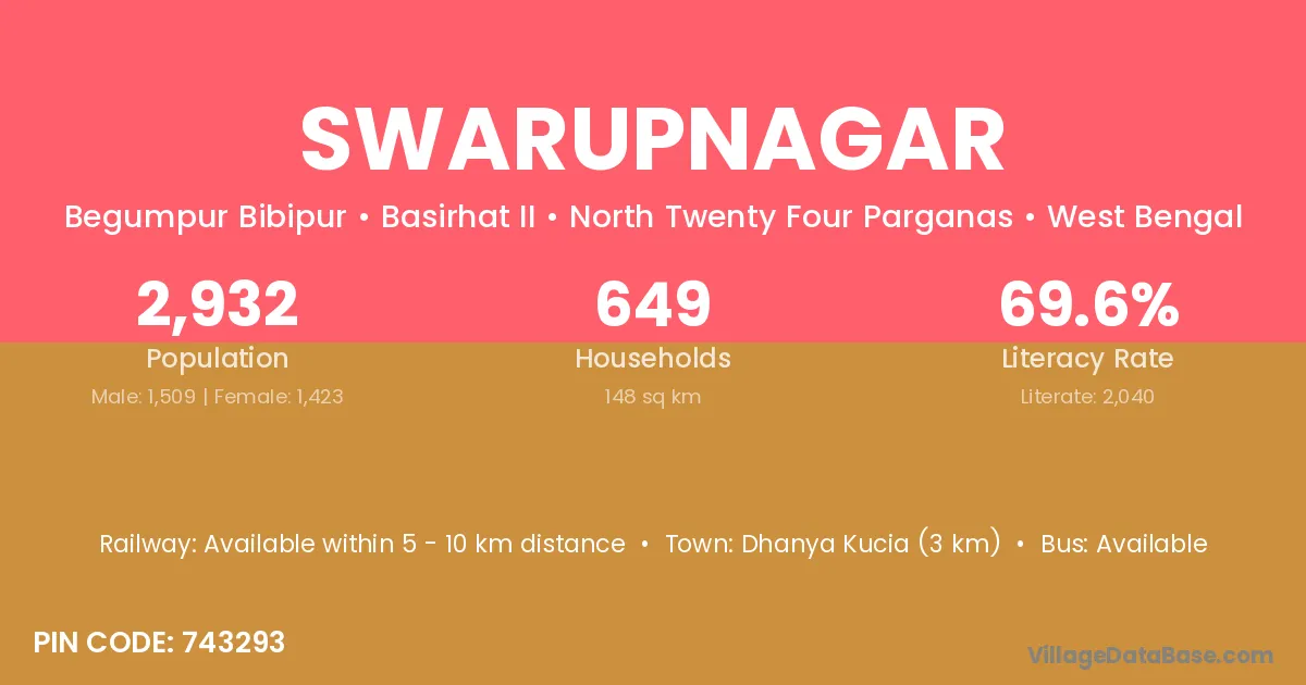 According to Census 2011 information, the village code of Swarupnagar village is 743293.