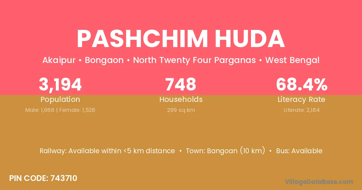 According to Census 2011 information, the village code of Pashchim Huda village is 743710.