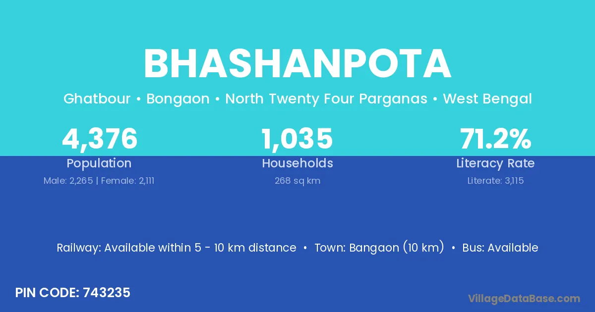 Bangaon (10 km) is the nearest town to Bhashanpota village for major economic activities and is located approximately 10 km away.