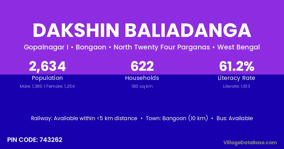Dakshin Baliadanga village is located in the Bongaon Subdivision of the North Twenty Four Parganas district in West Bengal.
