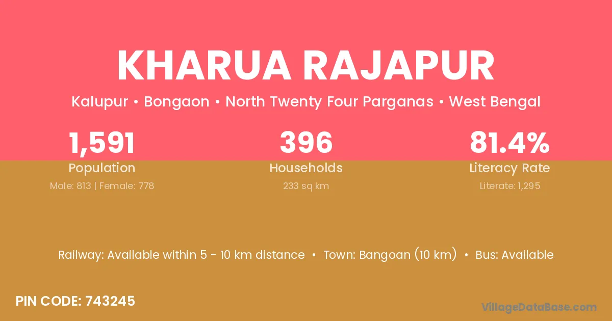 Kharua Rajapur village is located in the Bongaon Subdivision of the North Twenty Four Parganas district in West Bengal.