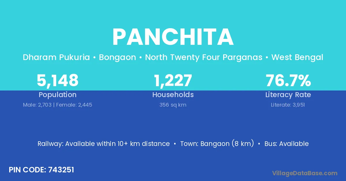 Bangaon (8 km) is the nearest town to Panchita village for major economic activities and is located approximately 8 km away.