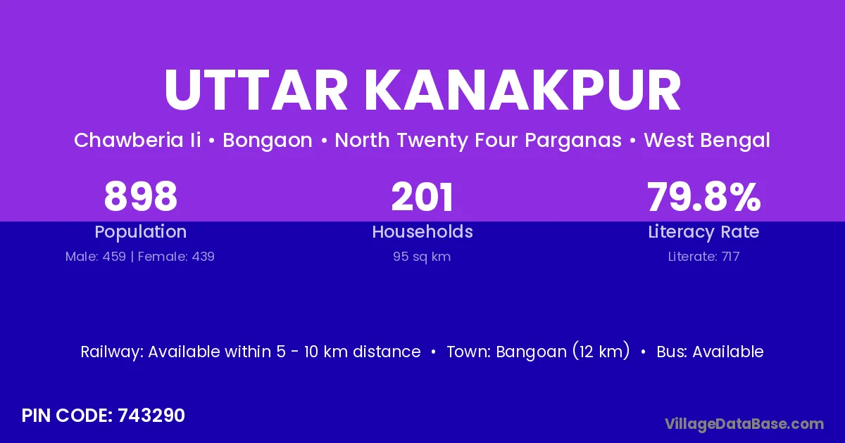 Uttar Kanakpur village has a total population of 898 people, of which 459 are males and 439 are females.
