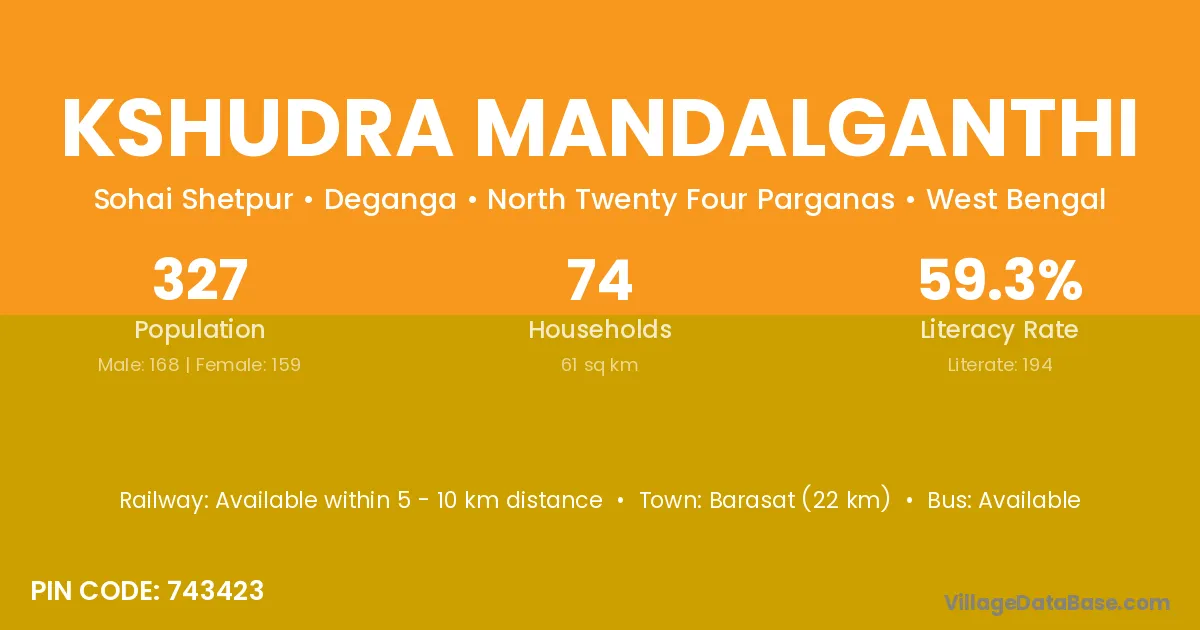 Barasat (22 km) is the nearest town to Kshudra Mandalganthi village for major economic activities and is located approximately 22 km away.