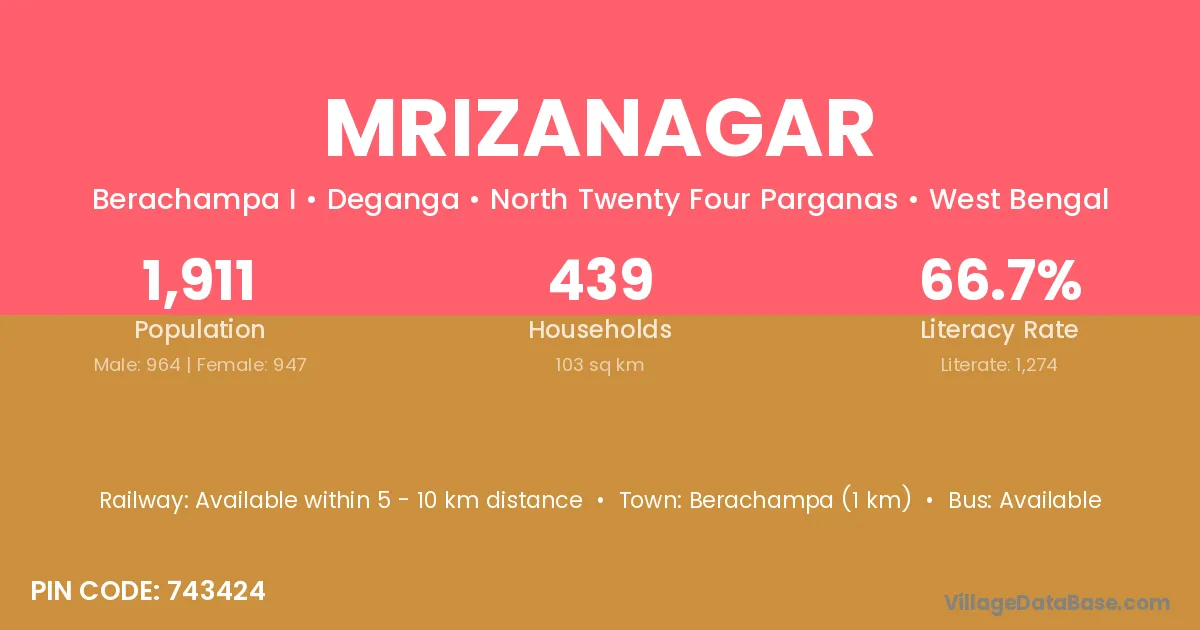 Berachampa (1 km) is the nearest town to Mrizanagar village for major economic activities and is located approximately 1 km away.