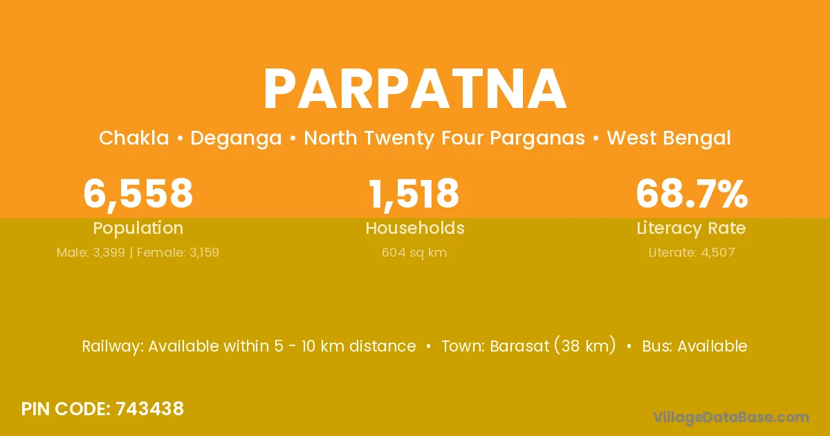 Parpatna village is located in the Deganga Subdivision of the North Twenty Four Parganas district in West Bengal.