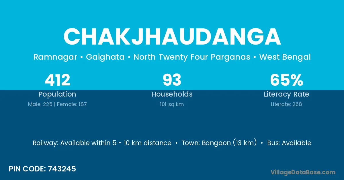 Bangaon (13 km) is the nearest town to Chakjhaudanga village for major economic activities and is located approximately 13 km away.