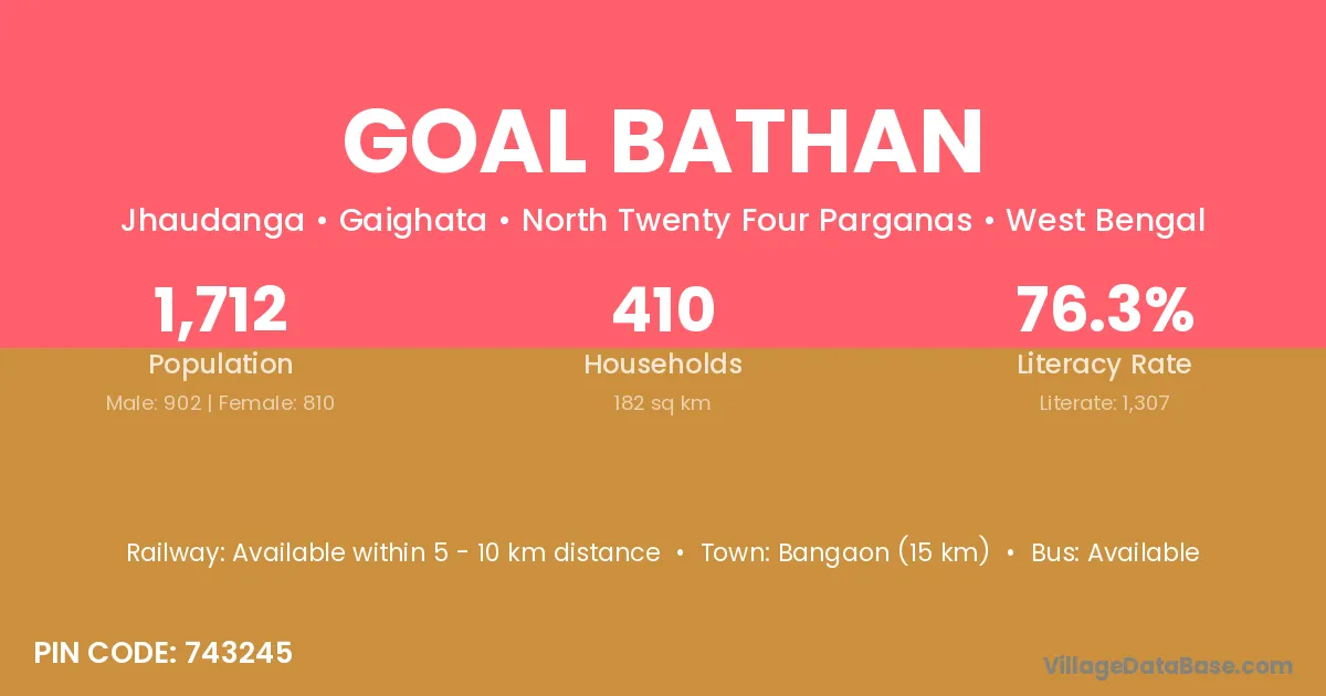 Bangaon (15 km) is the nearest town to Goal Bathan village for major economic activities and is located approximately 15 km away.