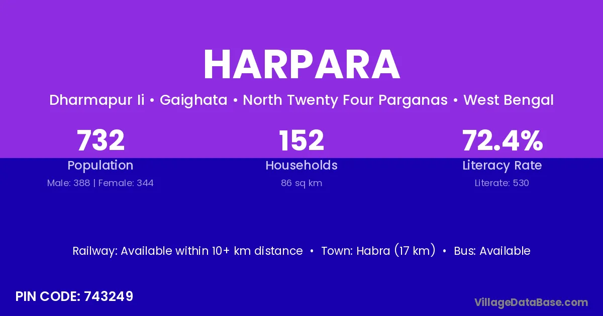 Habra (17 km) is the nearest town to Harpara village for major economic activities and is located approximately 17 km away.