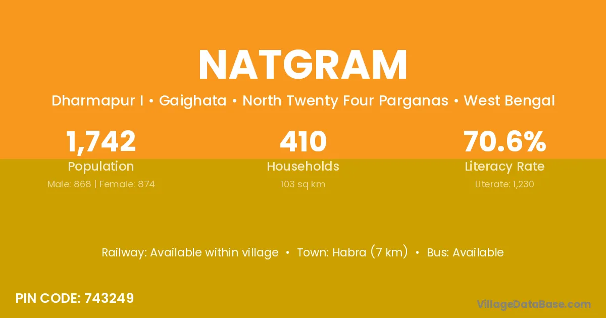 Habra (7 km) is the nearest town to Natgram village for major economic activities and is located approximately 7 km away.