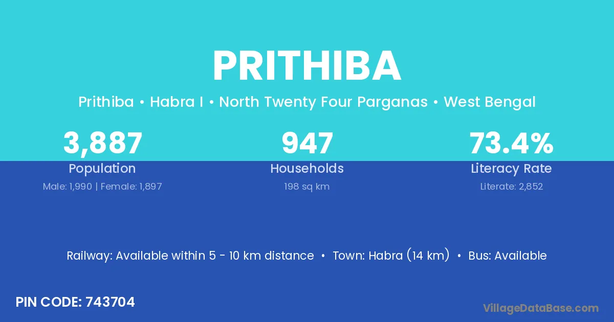Habra (14 km) is the nearest town to Prithiba village for major economic activities and is located approximately 14 km away.