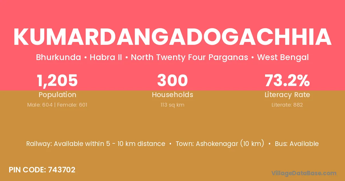 Ashokenagar (10 km) is the nearest town to Kumardangadogachhia village for major economic activities and is located approximately 10 km away.