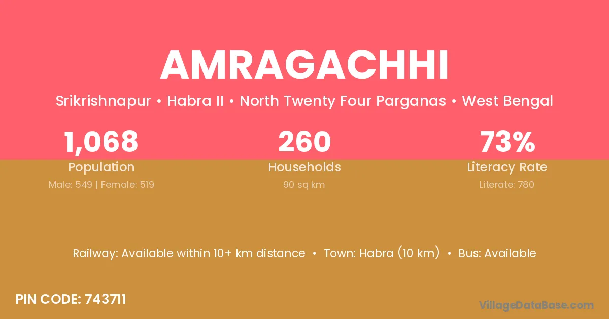 Habra (10 km) is the nearest town to Amragachhi village for major economic activities and is located approximately 10 km away.
