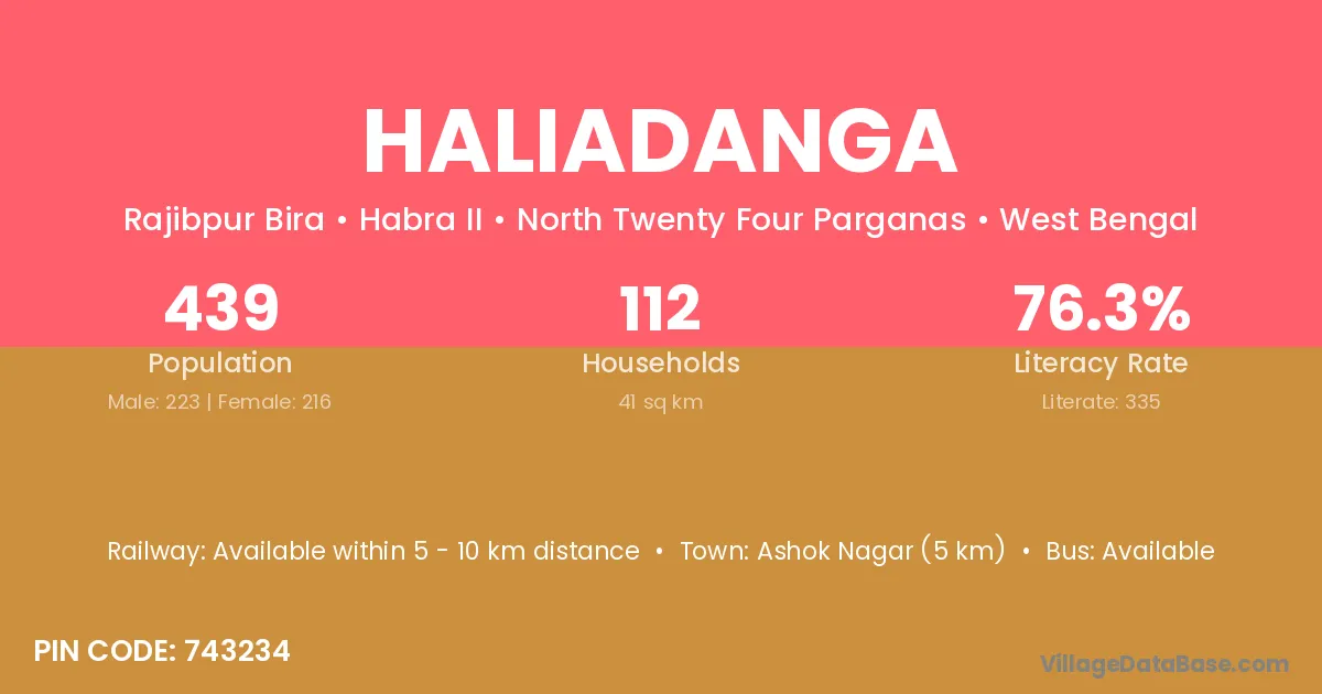 Ashok Nagar (5 km) is the nearest town to Haliadanga village for major economic activities and is located approximately 5 km away.