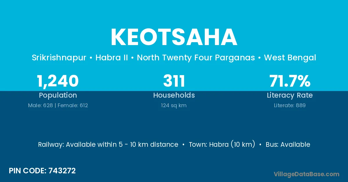 Habra (10 km) is the nearest town to Keotsaha village for major economic activities and is located approximately 10 km away.