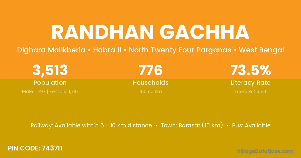 Barasat (10 km) is the nearest town to Randhan Gachha village for major economic activities and is located approximately 10 km away.