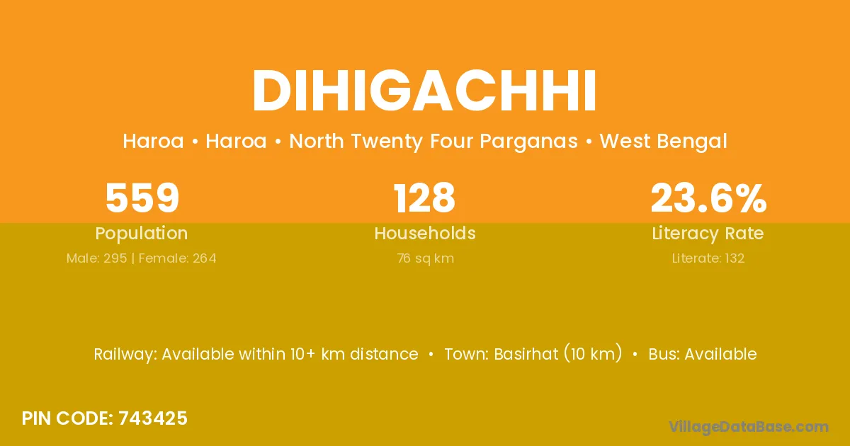 Basirhat (10 km) is the nearest town to Dihigachhi village for major economic activities and is located approximately 10 km away.