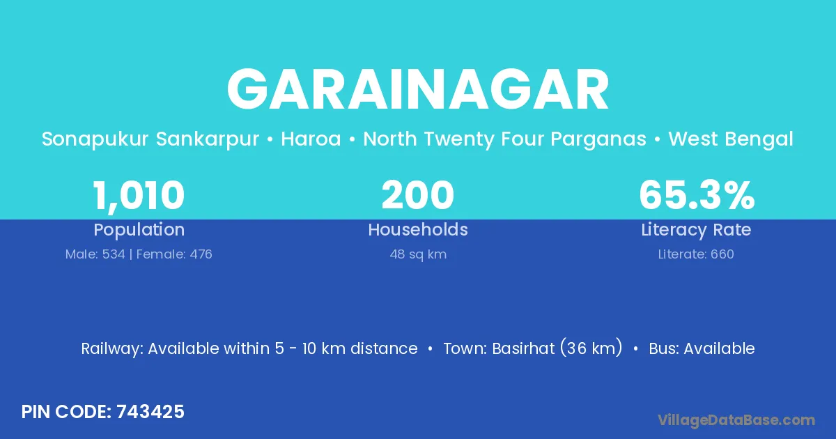 Basirhat (36 km) is the nearest town to Garainagar village for major economic activities and is located approximately 36 km away.