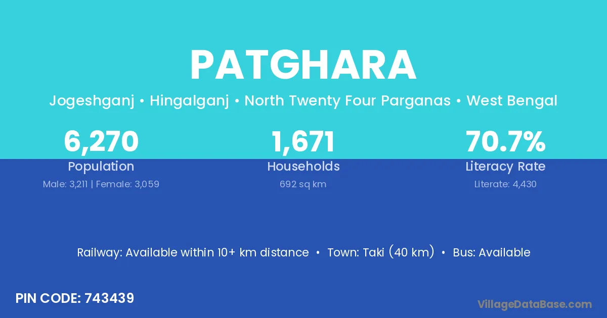 Taki (40 km) is the nearest town to Patghara village for major economic activities and is located approximately 40 km away.