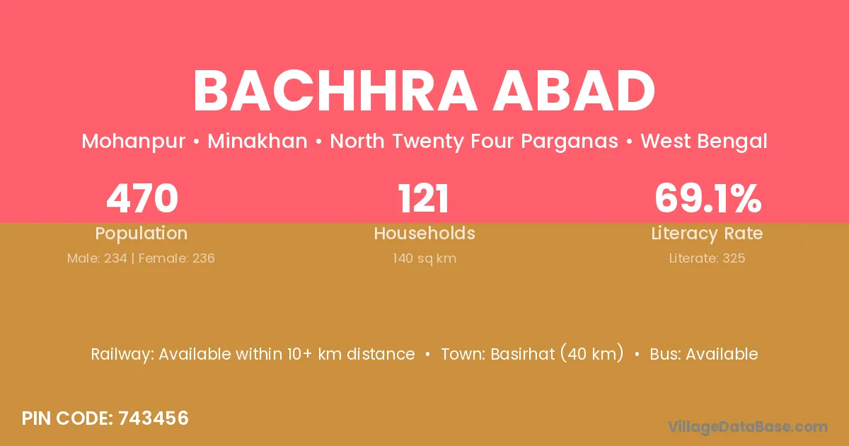Basirhat (40 km) is the nearest town to Bachhra Abad village for major economic activities and is located approximately 40 km away.