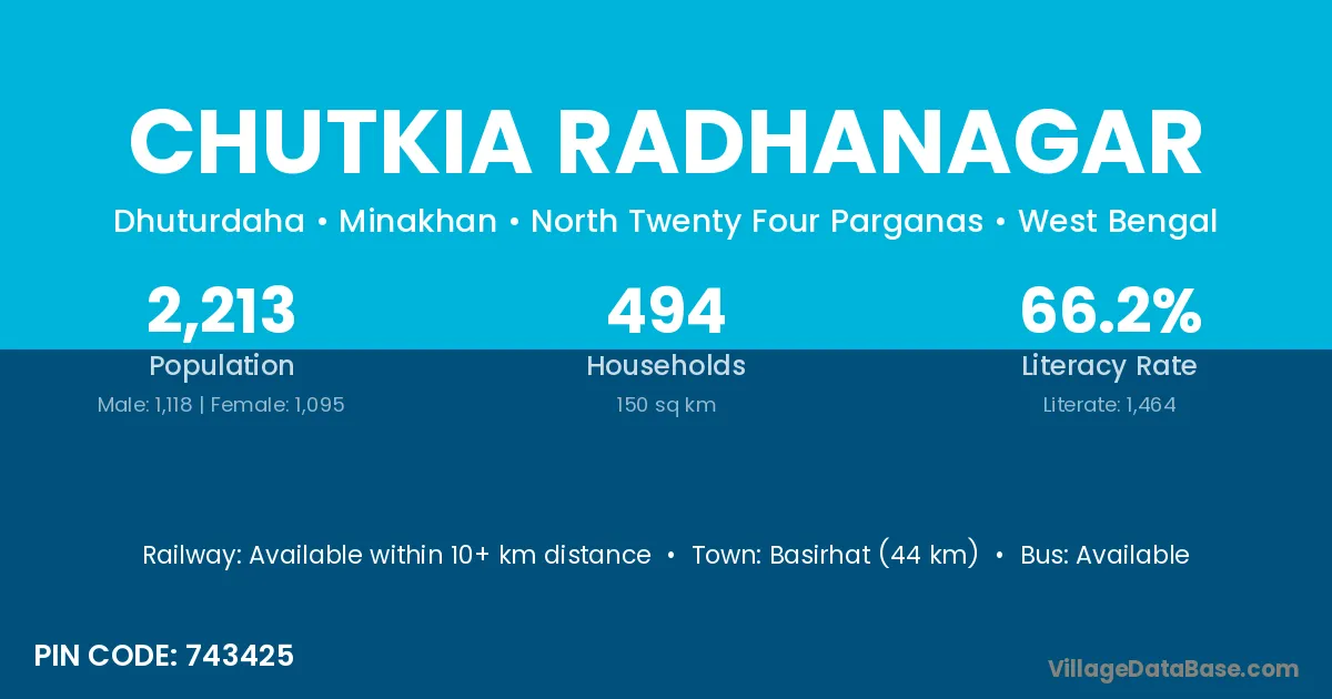 Basirhat (44 km) is the nearest town to Chutkia Radhanagar village for major economic activities and is located approximately 44 km away.