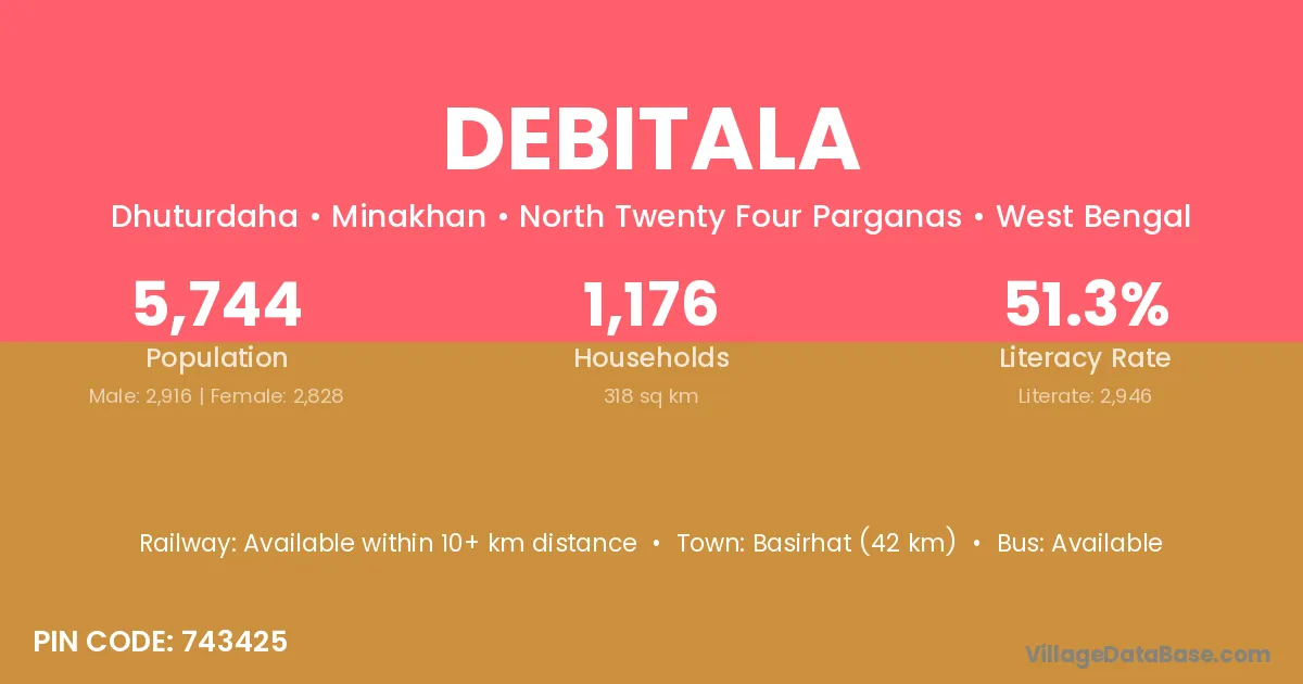 Basirhat (42 km) is the nearest town to Debitala village for major economic activities and is located approximately 42 km away.