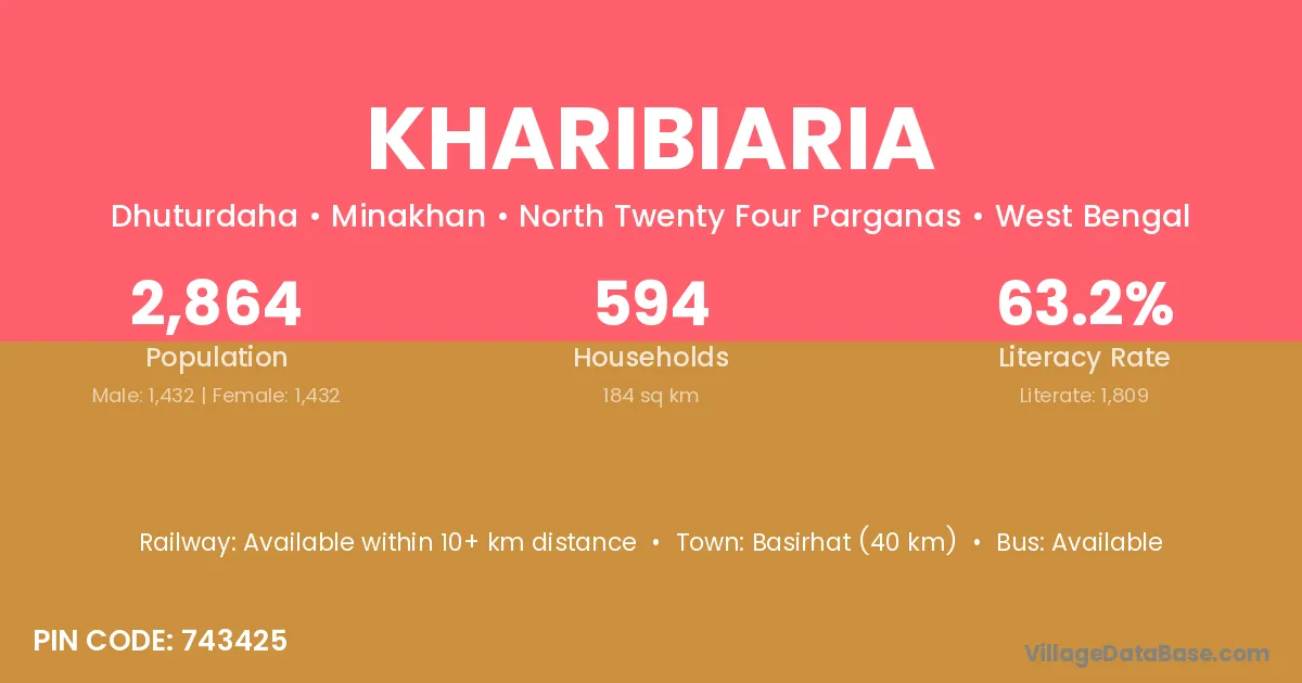 Basirhat (40 km) is the nearest town to Kharibiaria village for major economic activities and is located approximately 40 km away.