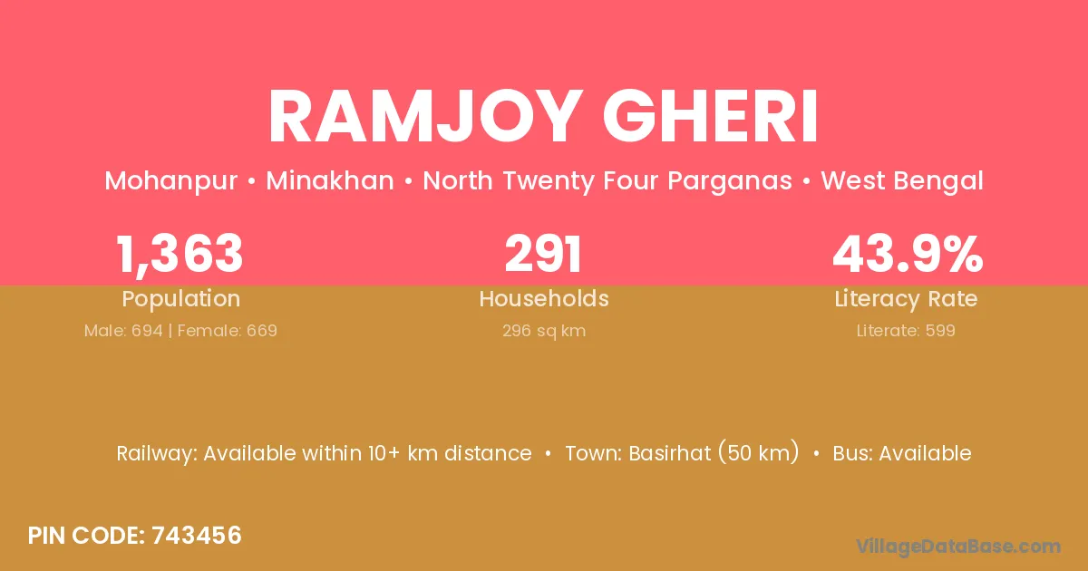 Ramjoy Gheri village has a total population of 1,363 people, of which 694 are males and 669 are females.