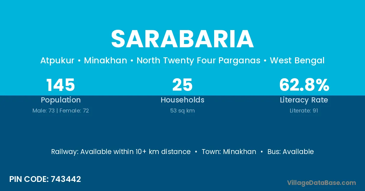 According to Census 2011 information, the village code of Sarabaria village is 743442.
