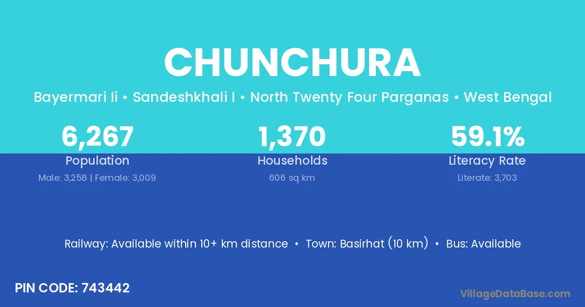 Chunchura village is located in the Sandeshkhali I Subdivision of the North Twenty Four Parganas district in West Bengal.