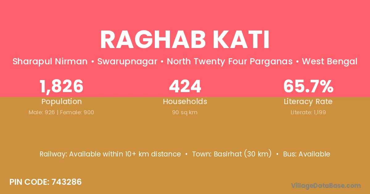 Basirhat (30 km) is the nearest town to Raghab Kati village for major economic activities and is located approximately 30 km away.