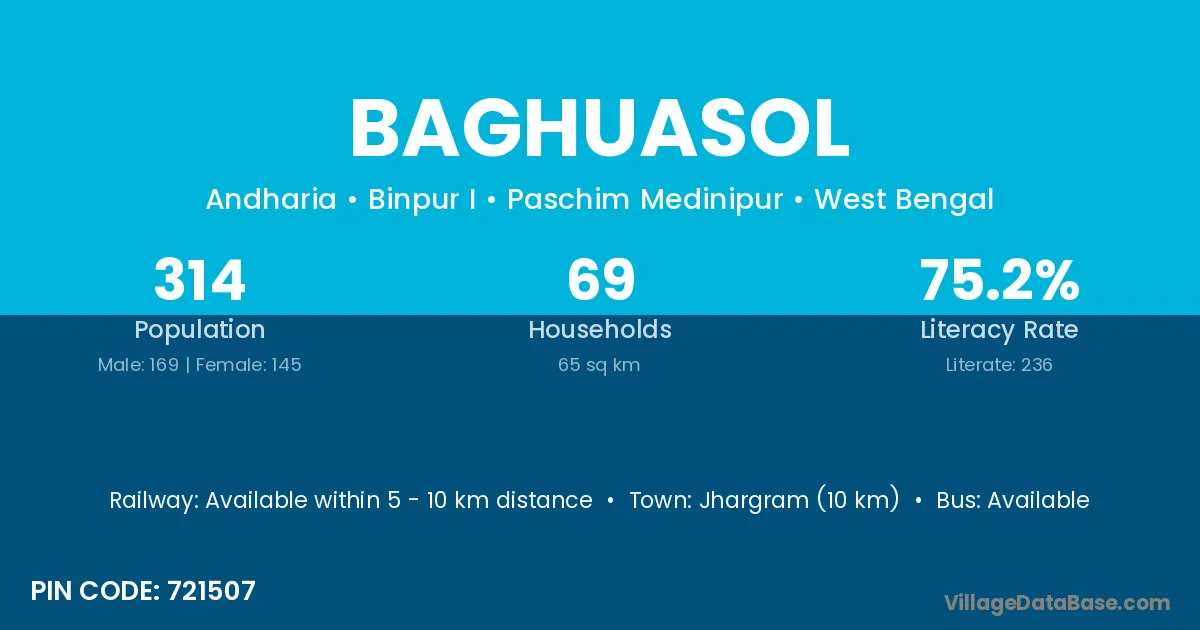 Jhargram (10 km) is the nearest town to Baghuasol village for major economic activities and is located approximately 10 km away.