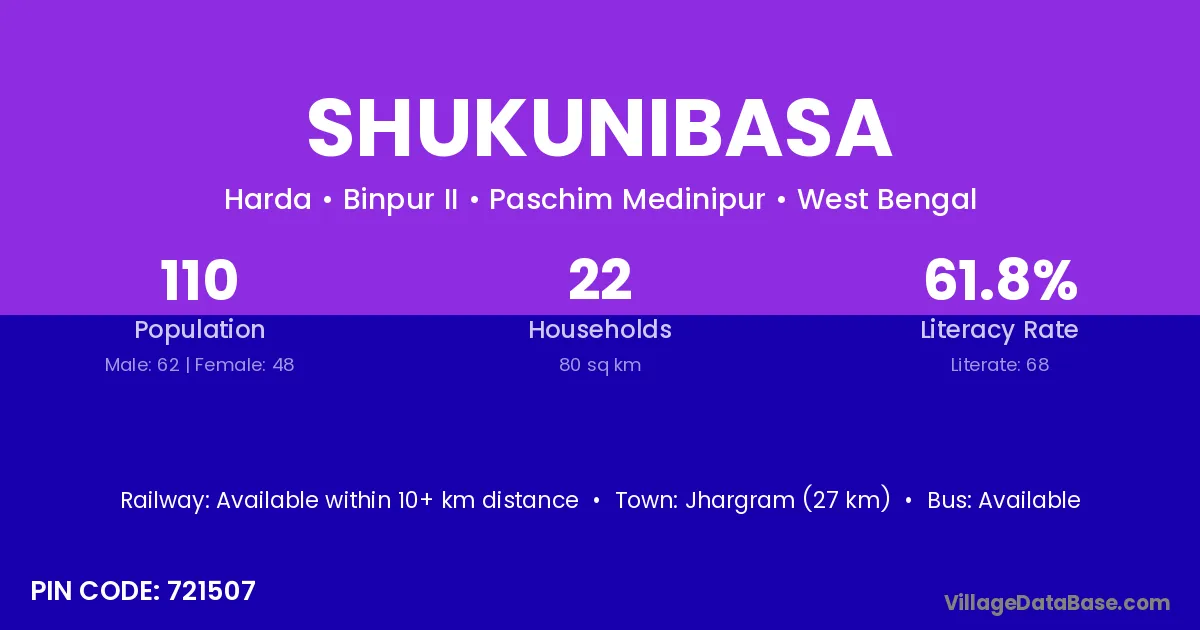 Shukunibasa village is located in the Binpur II Subdivision of the Paschim Medinipur district in West Bengal.