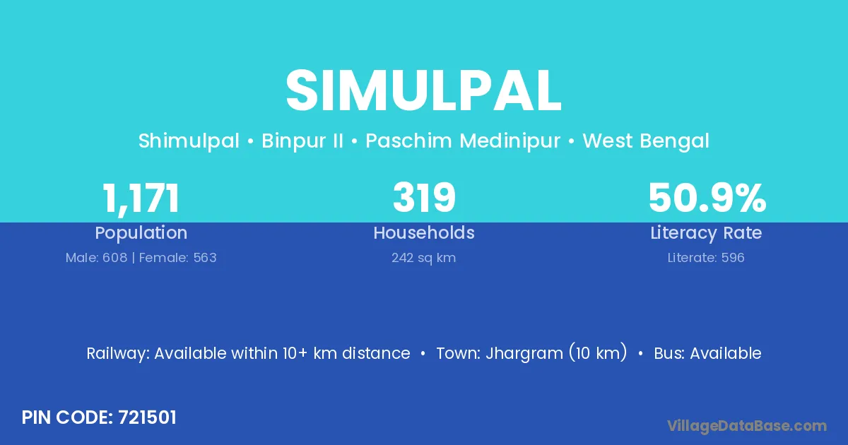 Simulpal village is located in the Binpur II Subdivision of the Paschim Medinipur district in West Bengal.