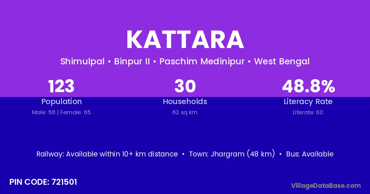 Jhargram (48 km) is the nearest town to Kattara village for major economic activities and is located approximately 48 km away.