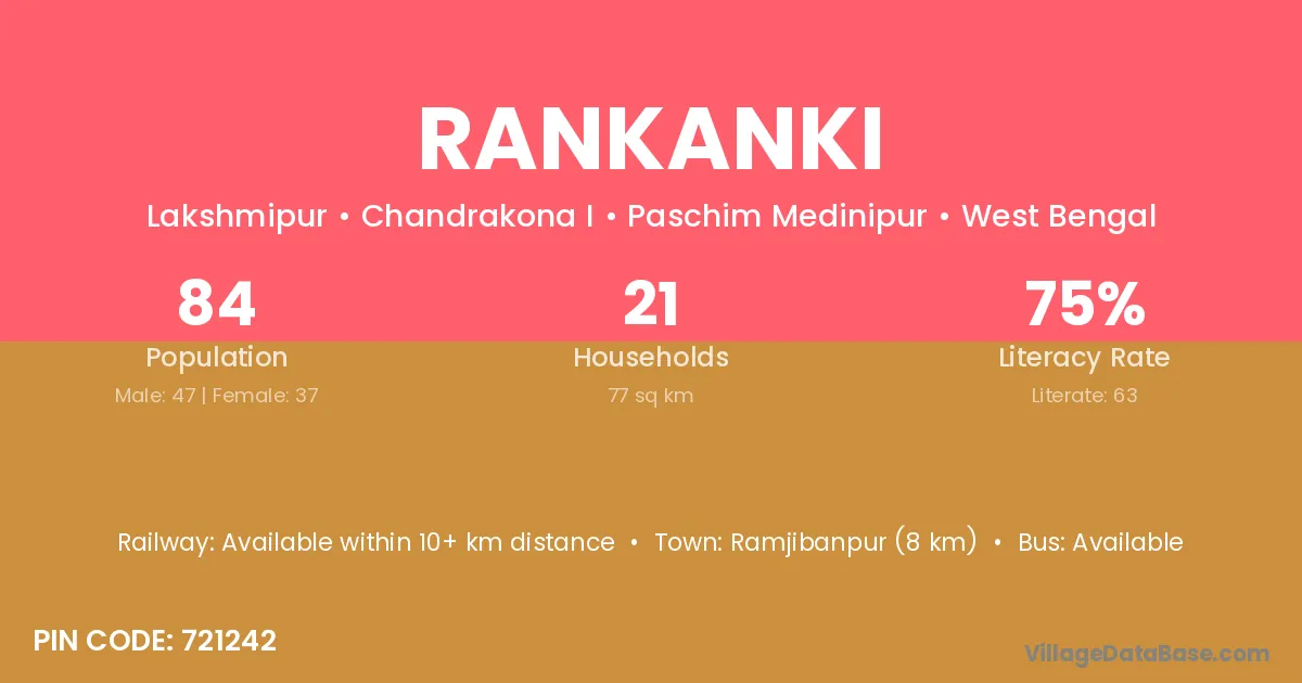 Rankanki village is located in the Chandrakona I Subdivision of the Paschim Medinipur district in West Bengal.